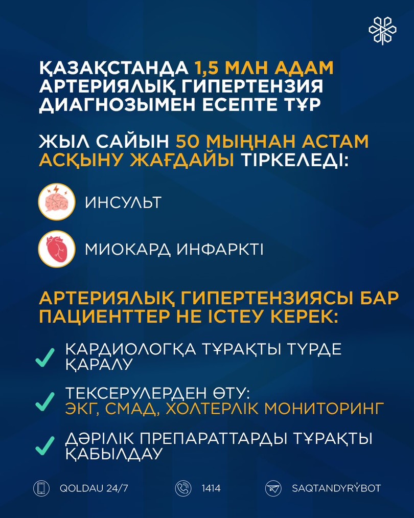 Қазақстанда 1,5 млн адам артериялық гипертензия диагнозымен есепте тұр. - gp27.kz