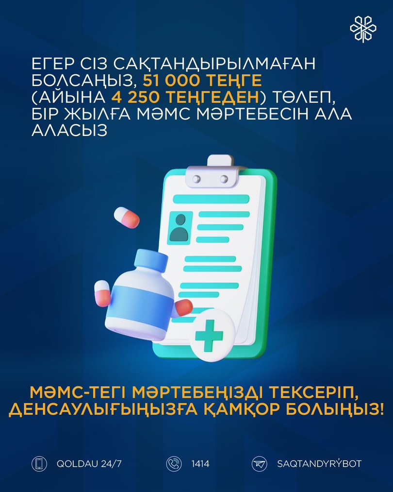 МӘМС-тегі мәртебеңізді тексеріп, денсаулығыңызға қамқор болыңыз!