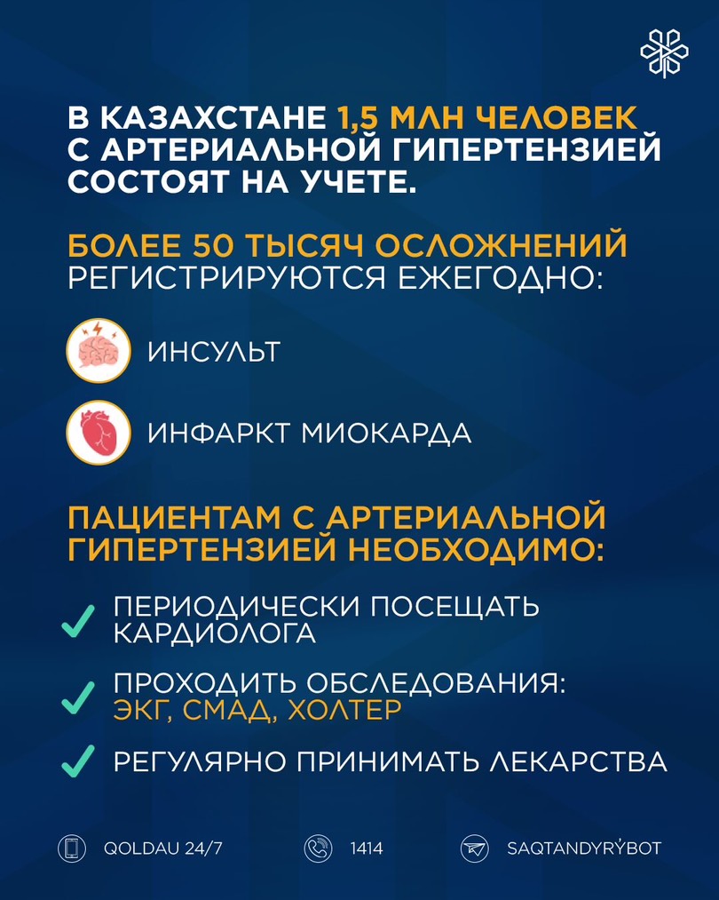 Артериальная гипертензия – одно из самых распространённых хронических заболеваний. Сегодня с повышенным артериальным давлением в Казахстане живут около 1,5 млн человек.