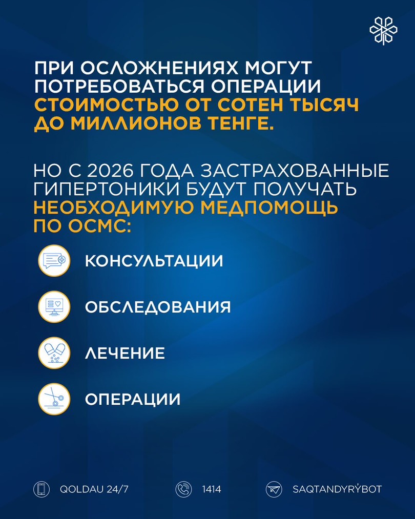 С 2026 года динамическое наблюдение и лечение артериальной гипертензии проводится в пакете ОСМС.